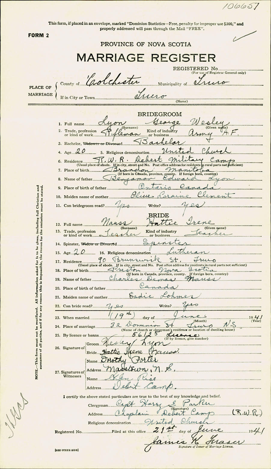 Registration: Year: 1941 number: 106657