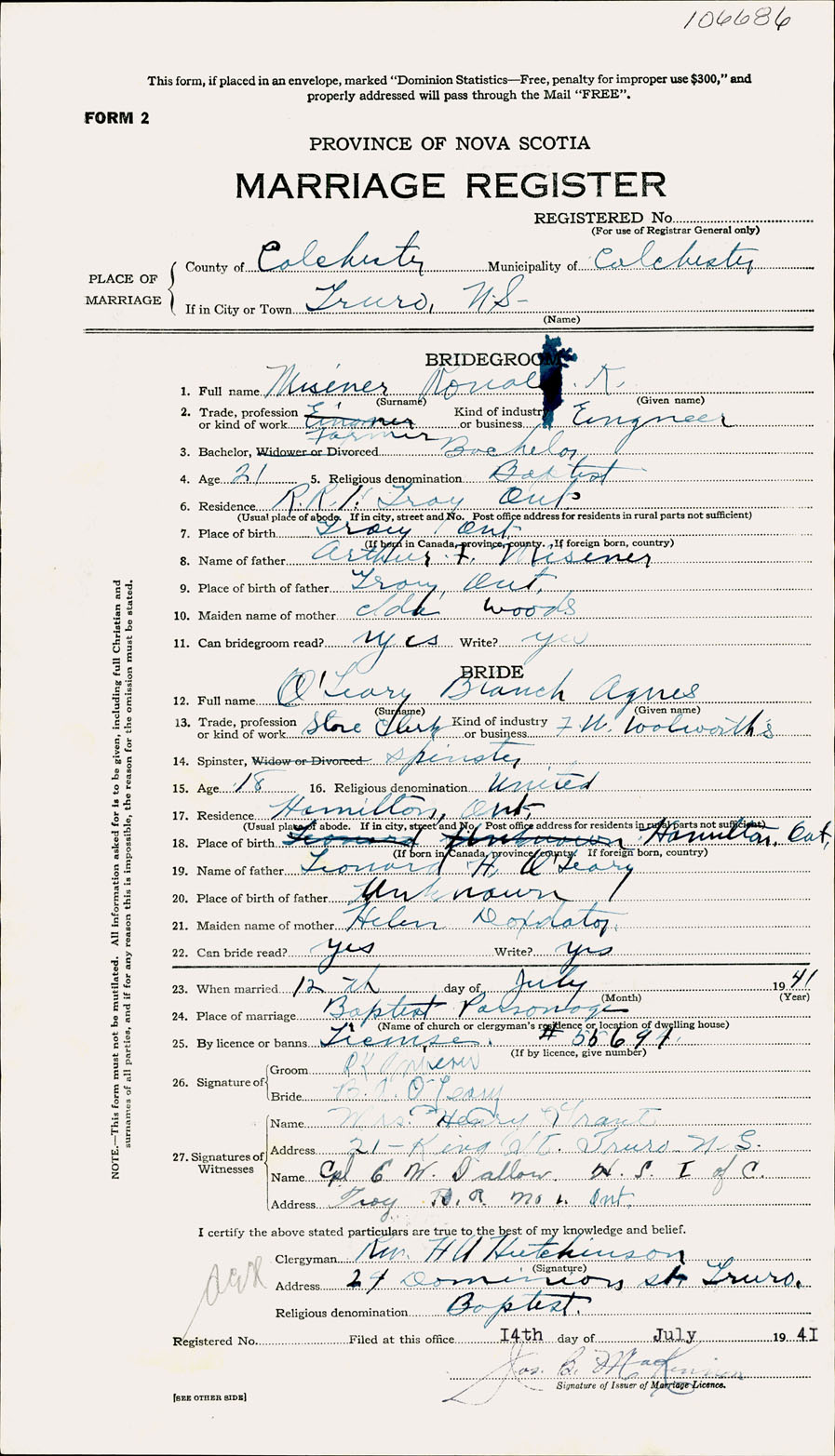 Registration: Year: 1941 number: 106686