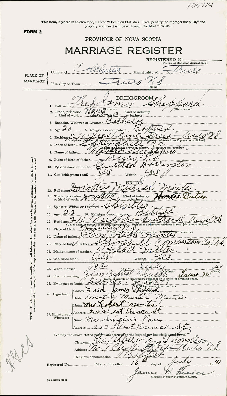Registration: Year: 1941 number: 106714