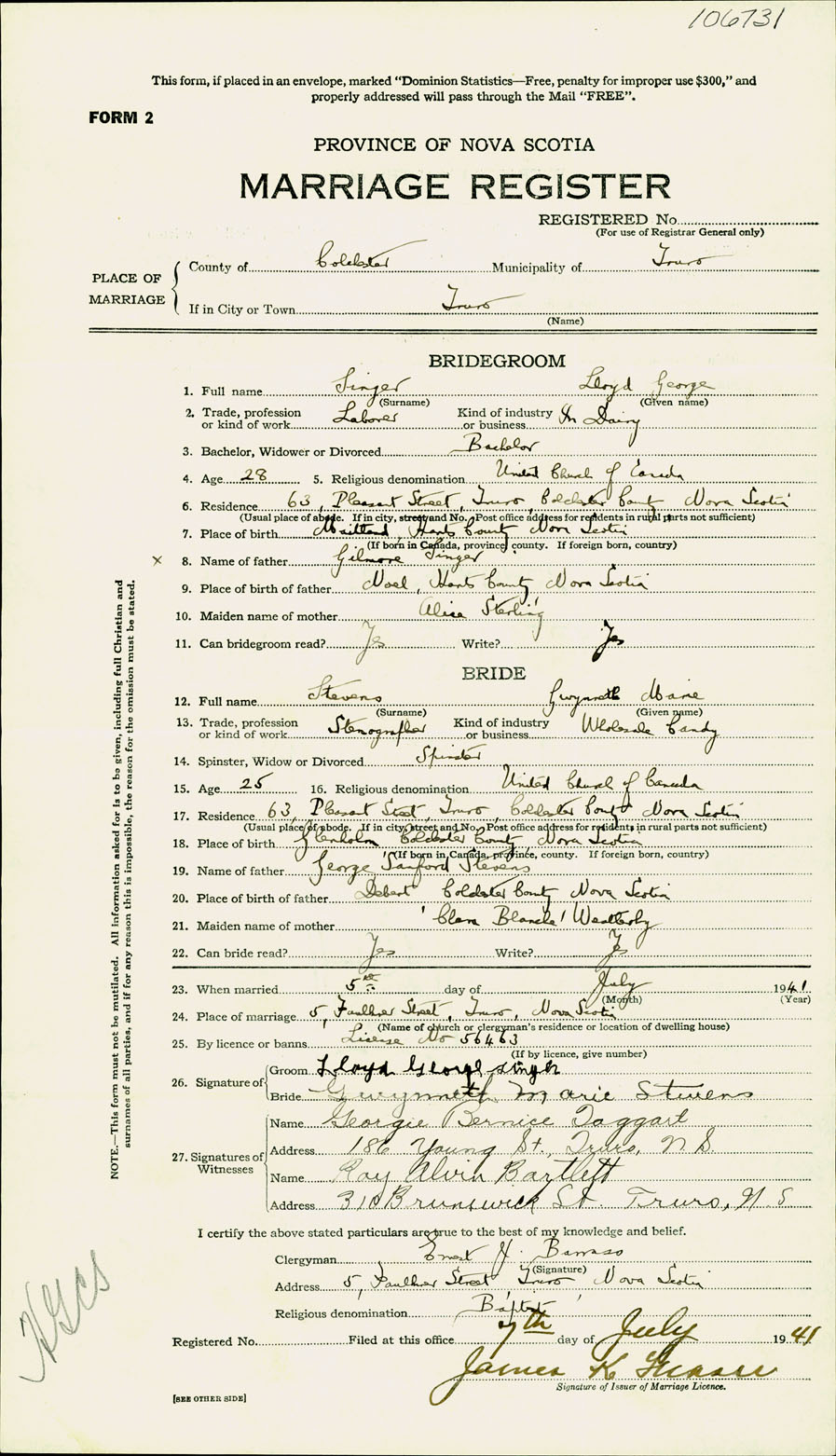Registration: Year: 1941 number: 106731