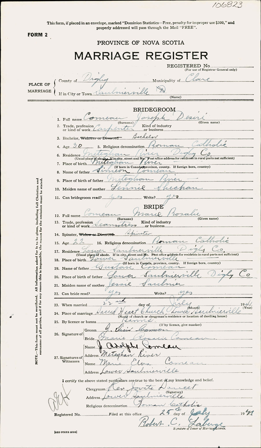 Registration: Year: 1941 number: 106823