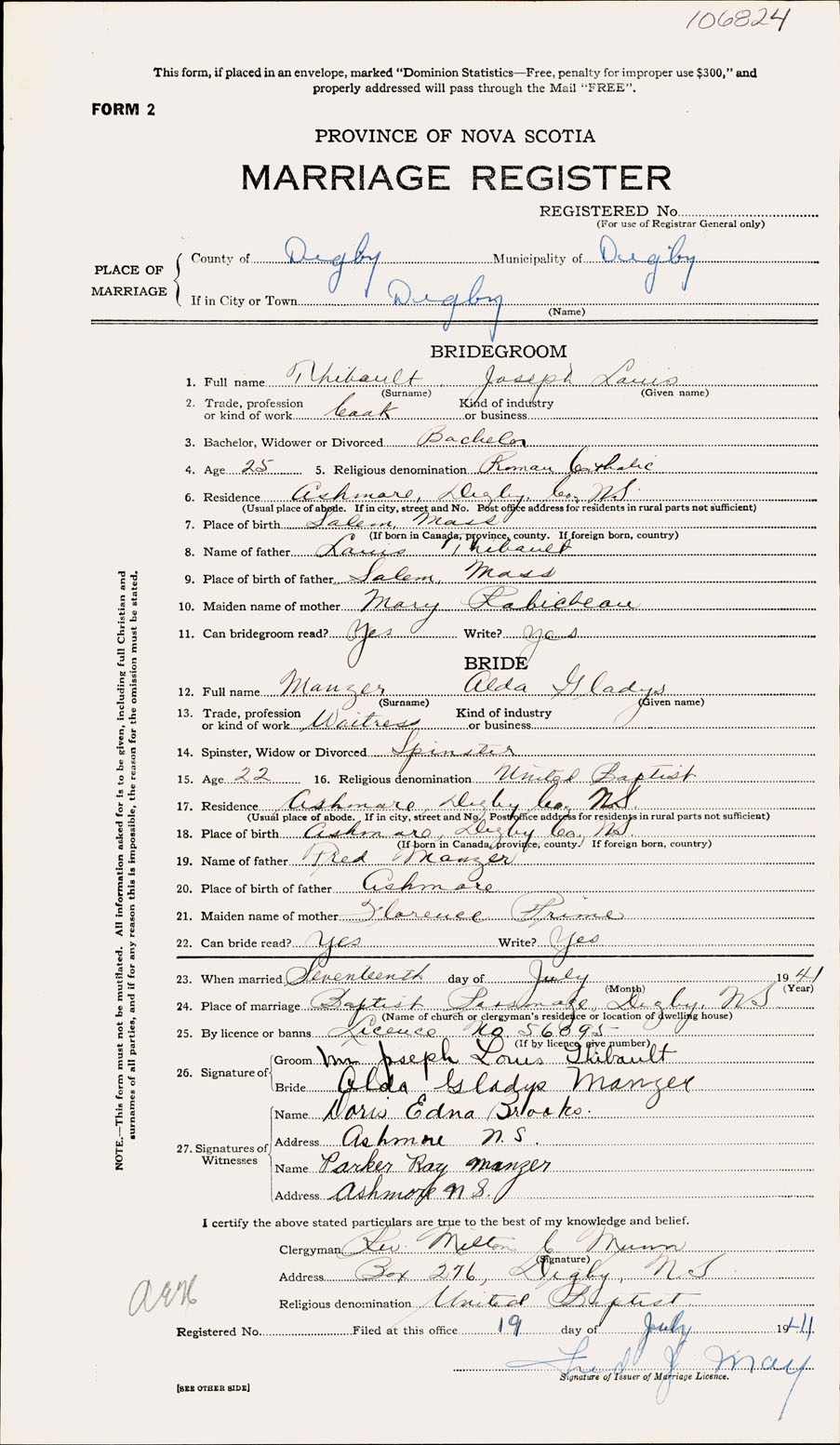Registration: Year: 1941 number: 106824