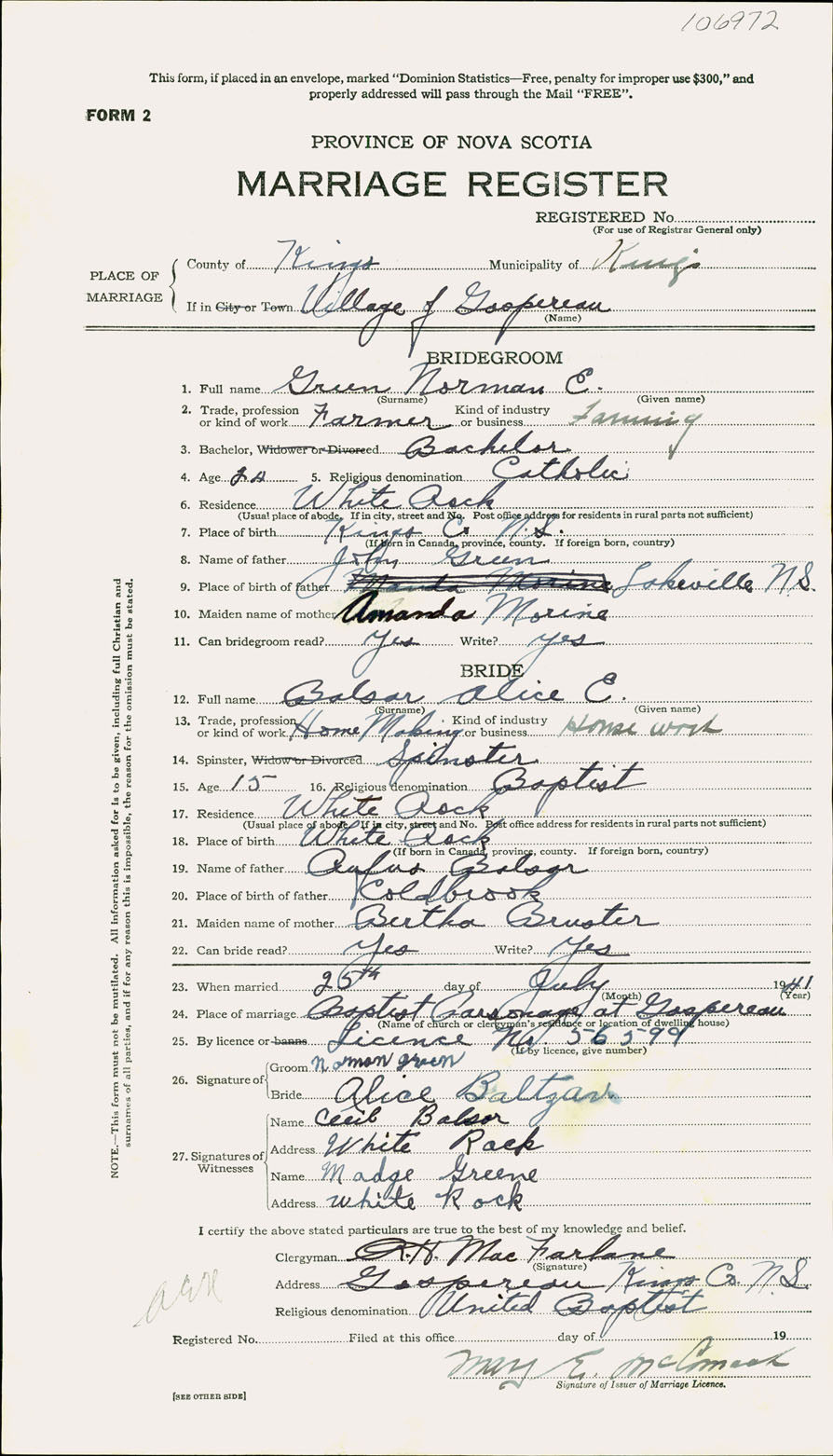Registration: Year: 1941 number: 106972