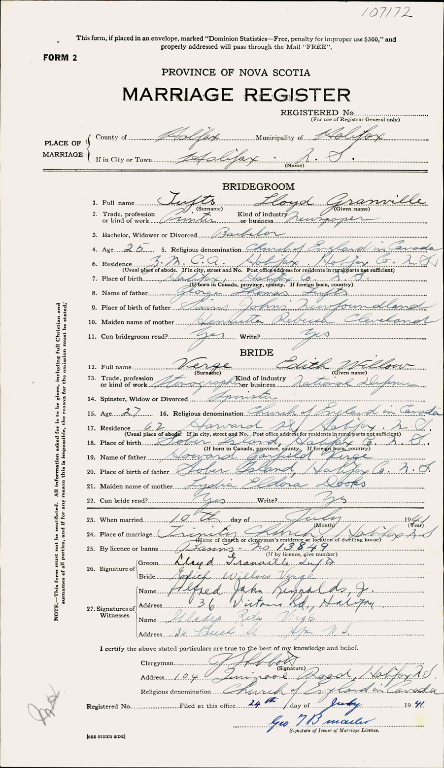 Registration: Year: 1941 number: 107172