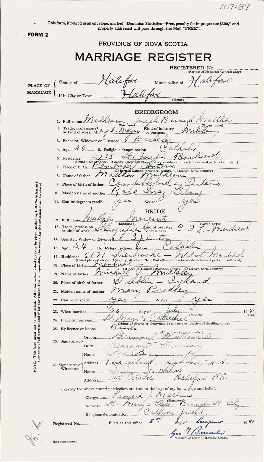 Registration: Year: 1941 number: 107189