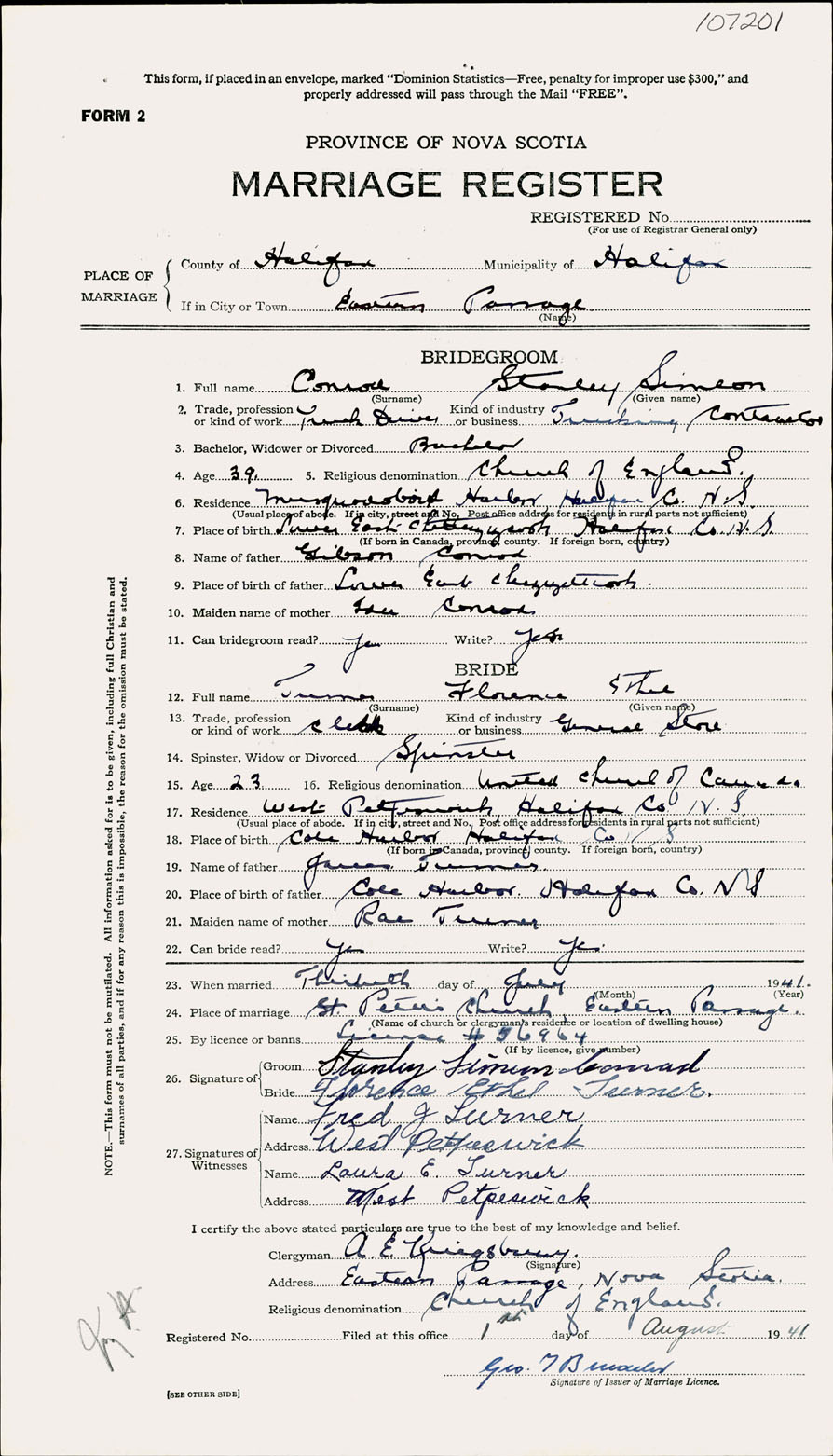 Registration: Year: 1941 number: 107201
