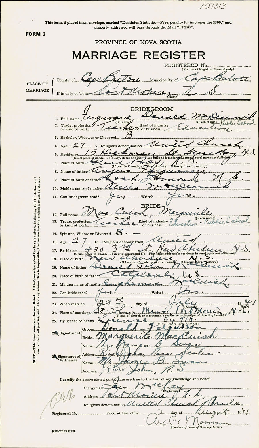 Registration: Year: 1941 number: 107313