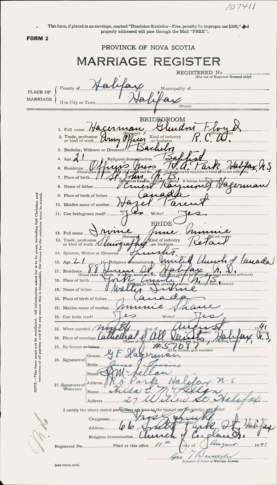 Registration: Year: 1941 number: 107411