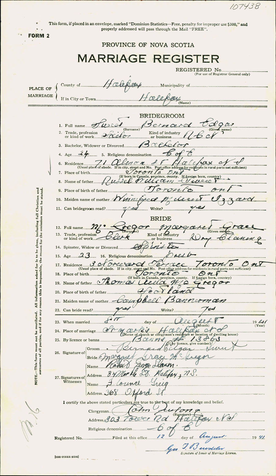 Registration: Year: 1941 number: 107438