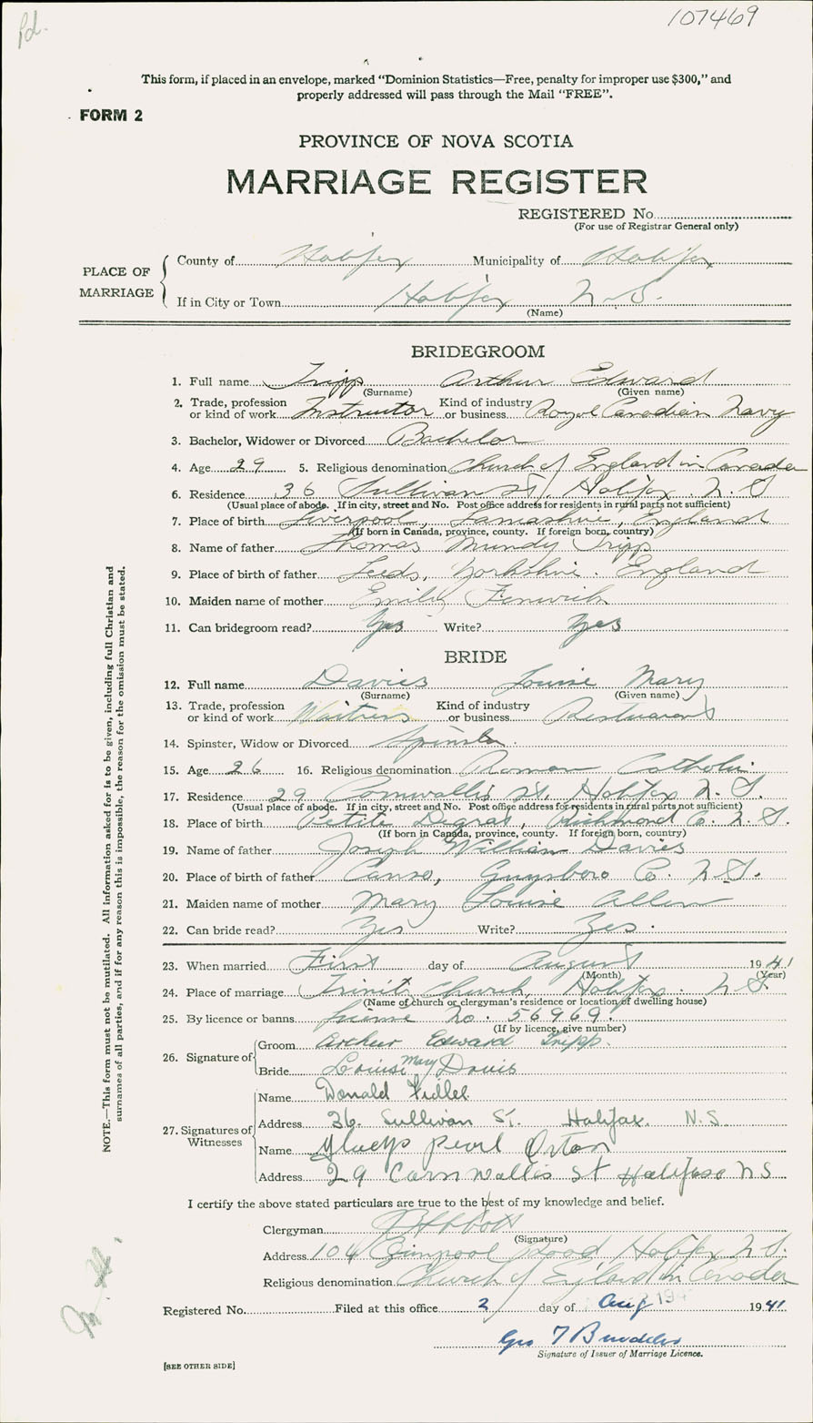 Registration: Year: 1941 number: 107469