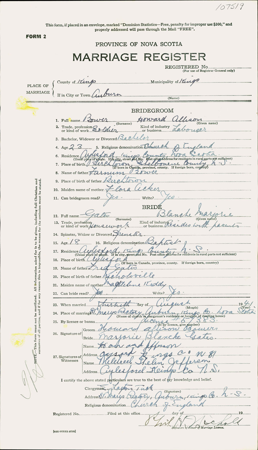 Registration: Year: 1941 number: 107519