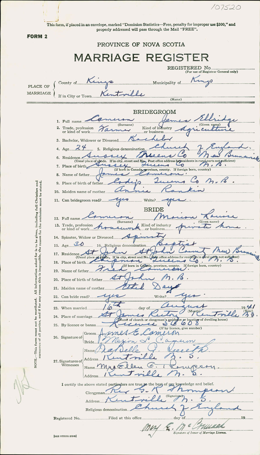 Registration: Year: 1941 number: 107520