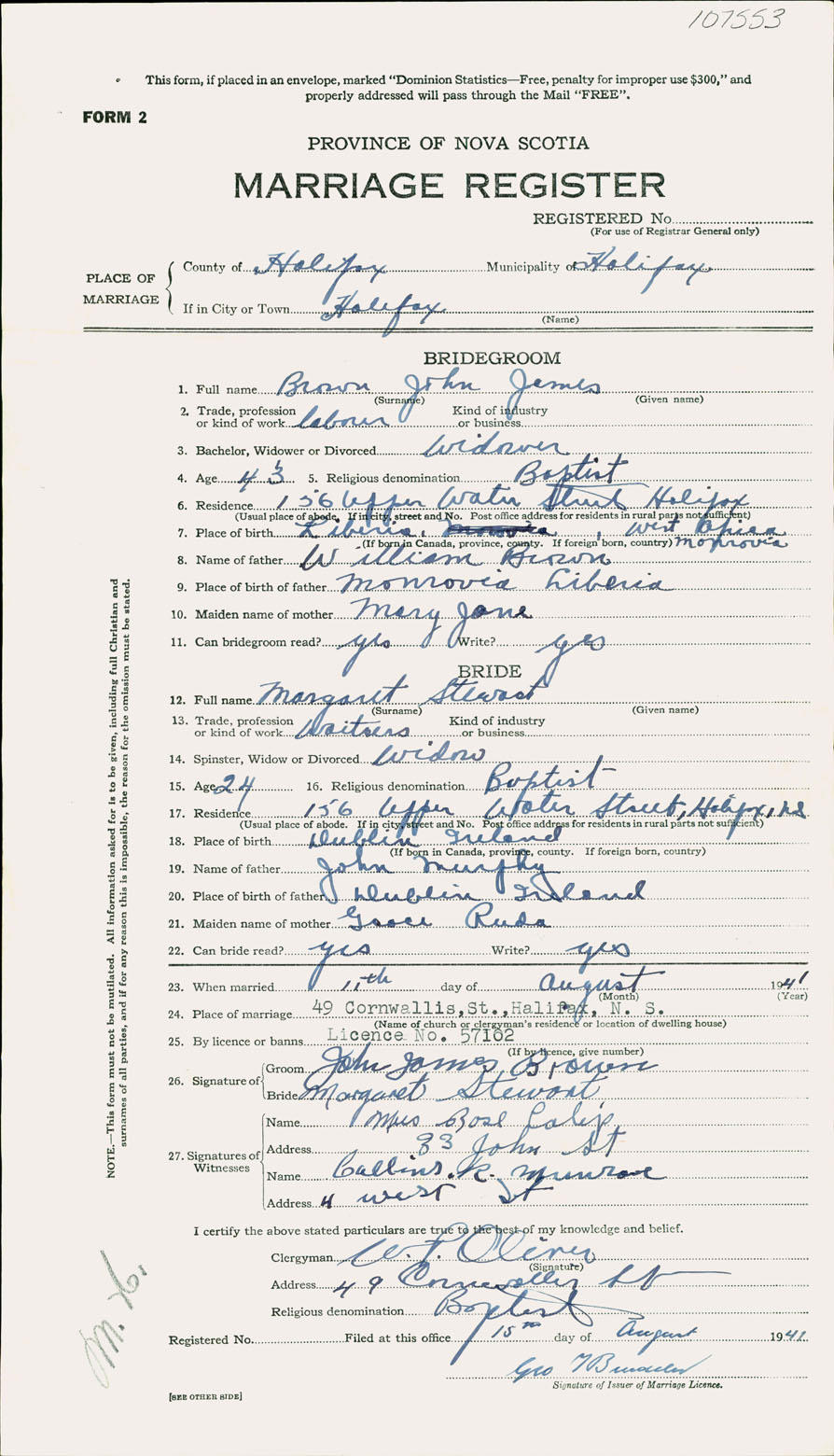 Registration: Year: 1941 number: 107553