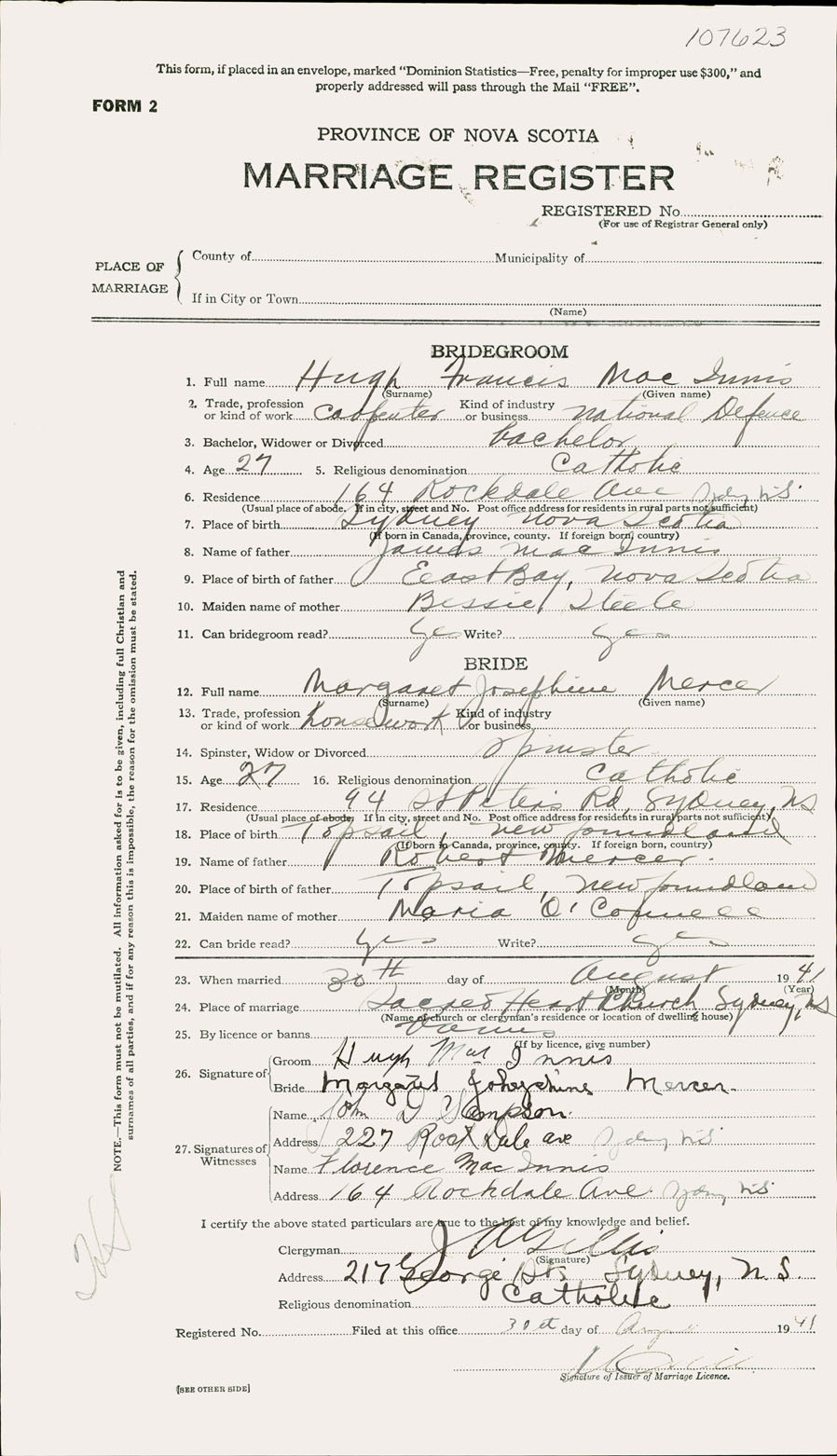 Registration: Year: 1941 number: 107623
