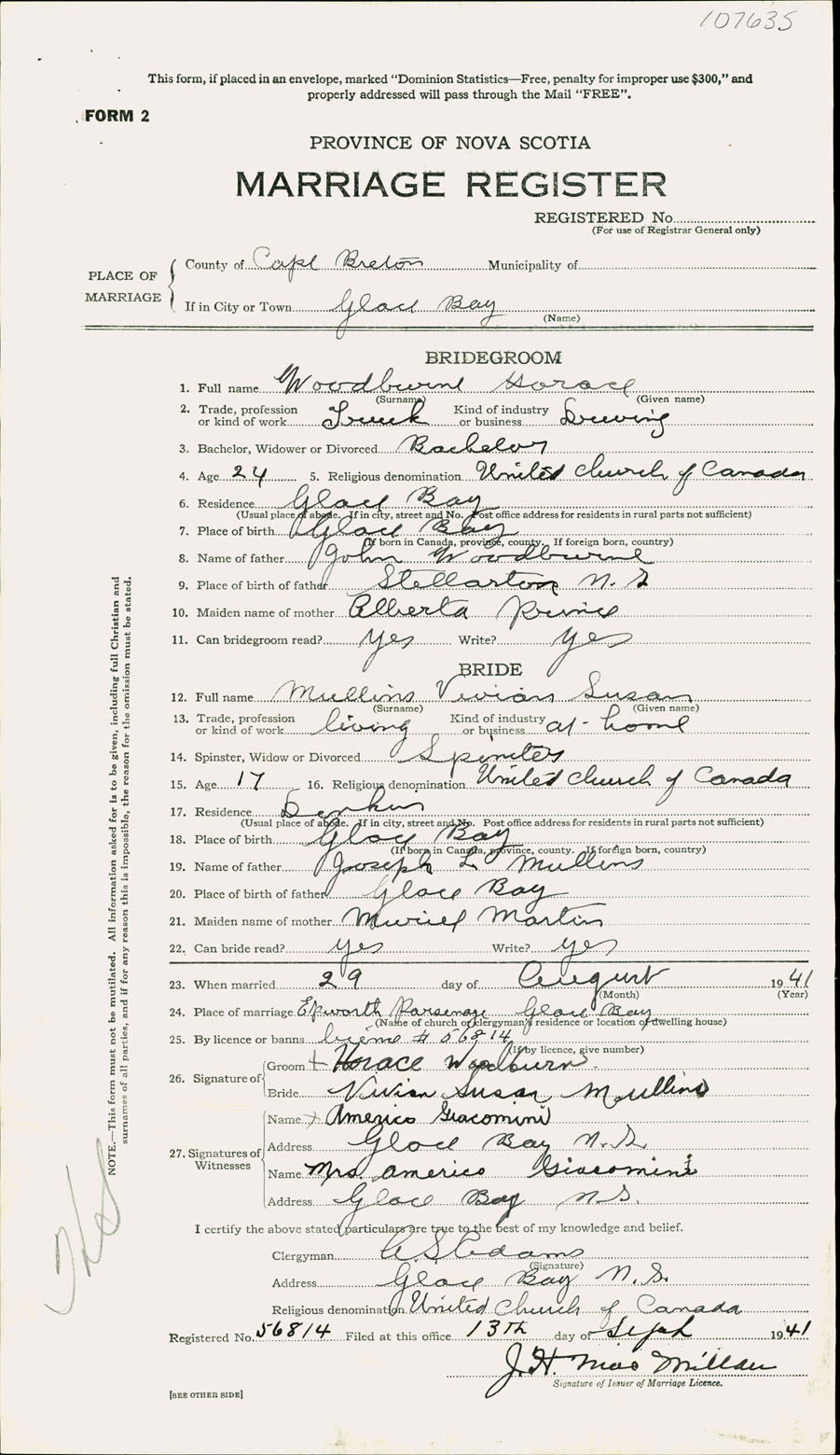 Registration: Year: 1941 number: 107635