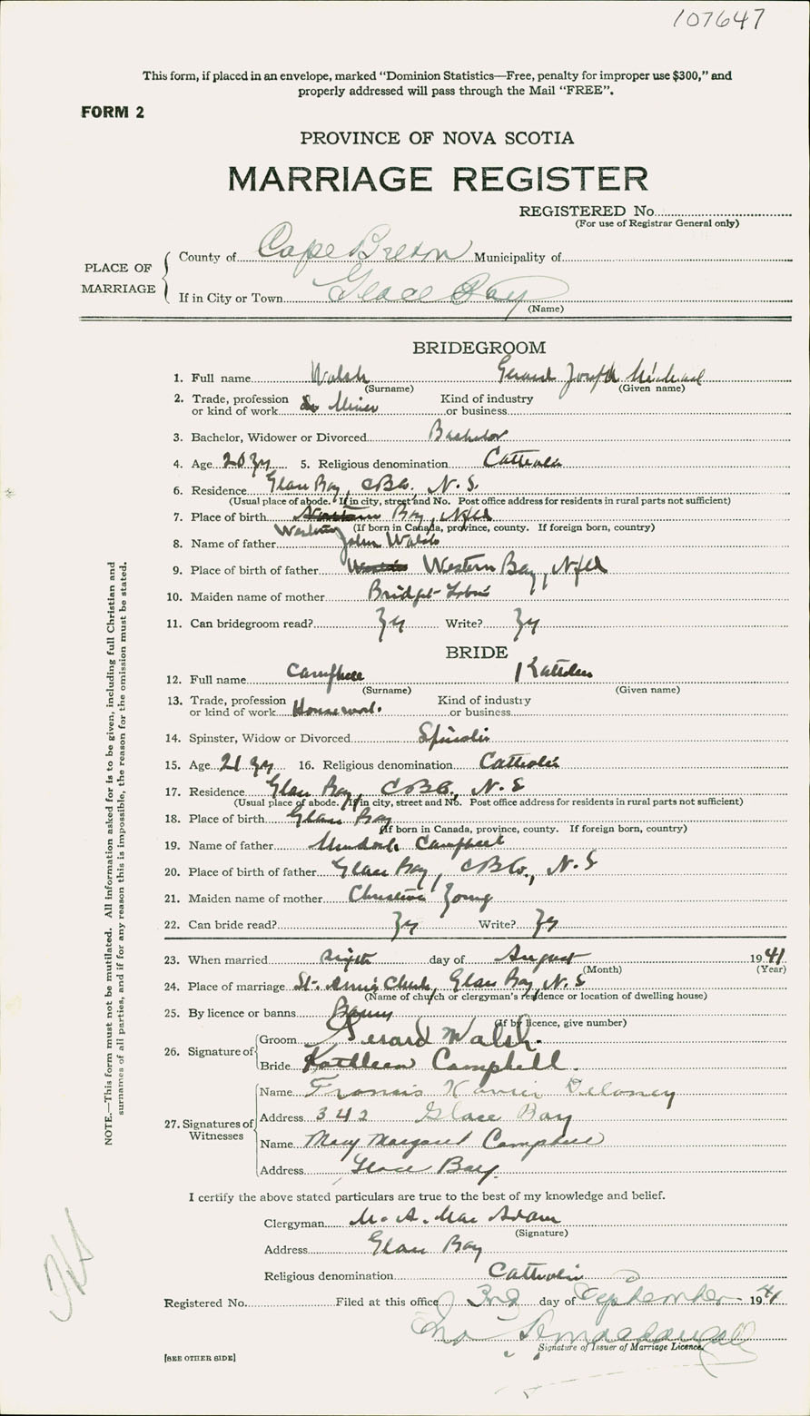 Registration: Year: 1941 number: 107647