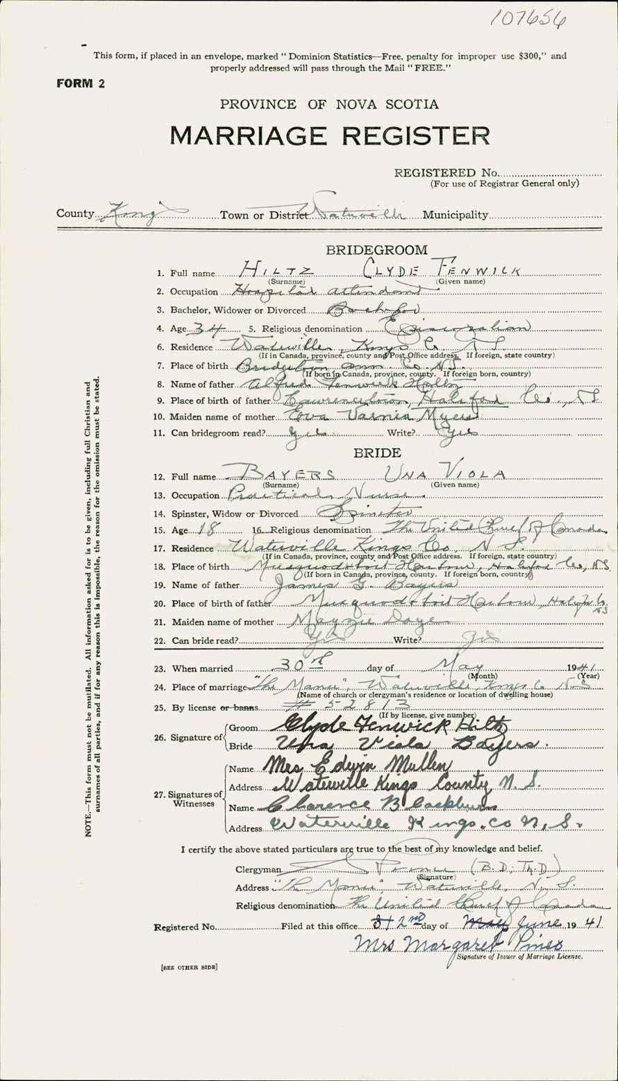 Registration: Year: 1941 number: 107656