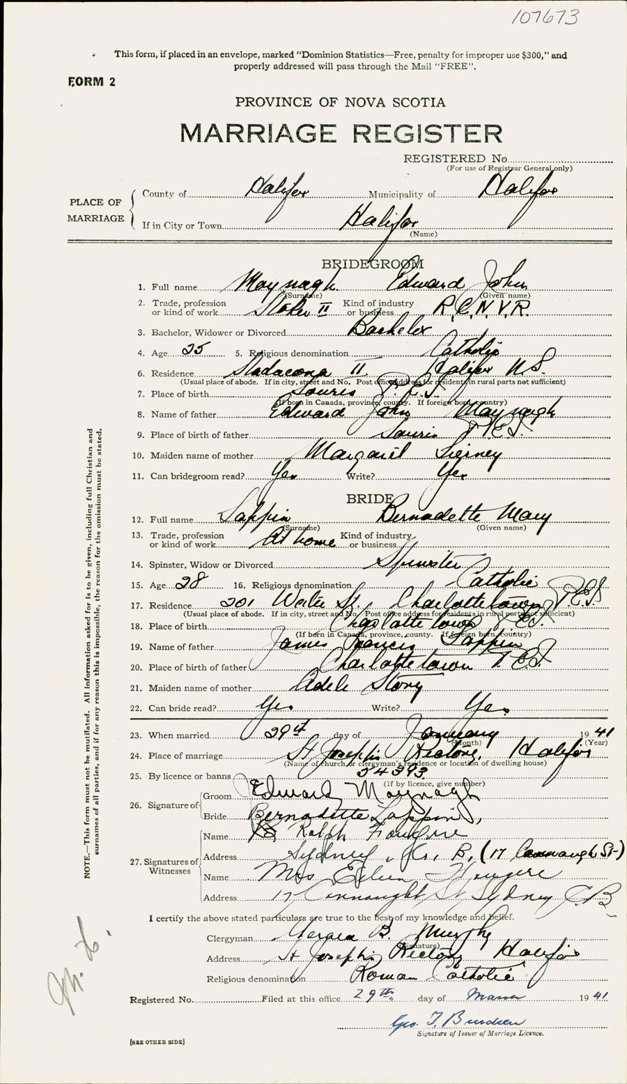 Registration: Year: 1941 number: 107673