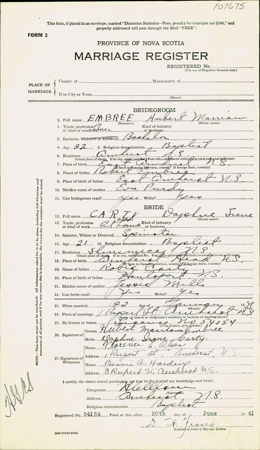 Registration: Year: 1941 number: 107675