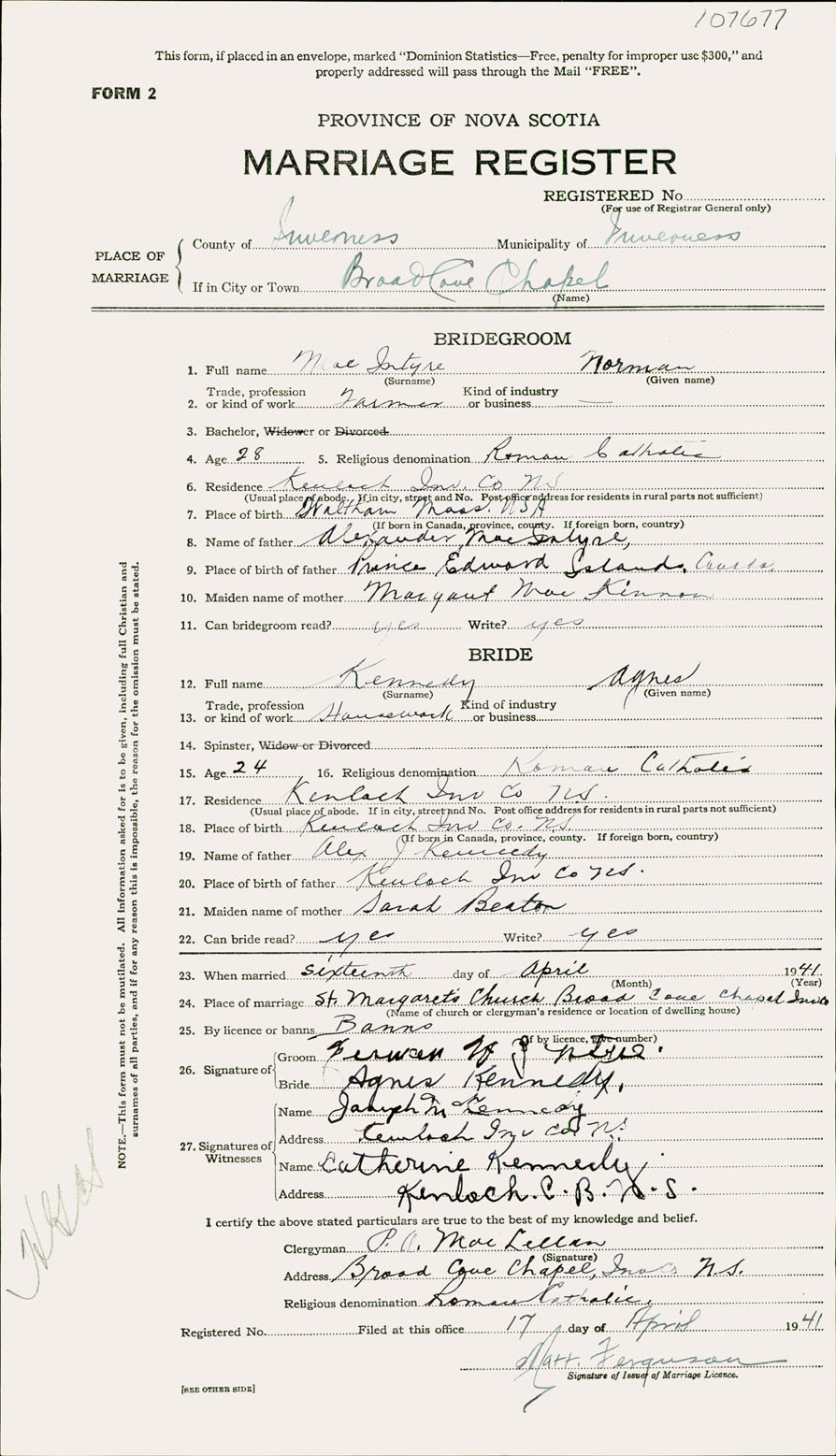 Registration: Year: 1941 number: 107677