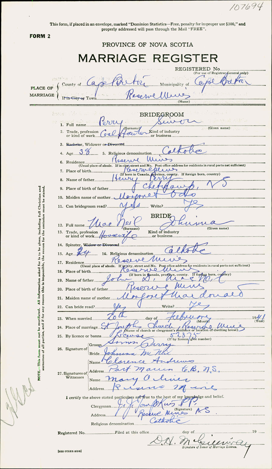 Registration: Year: 1941 number: 107694