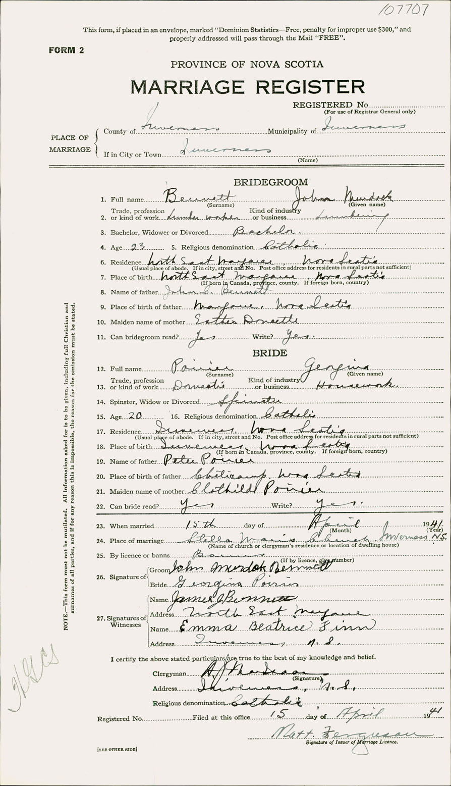Registration: Year: 1941 number: 107707