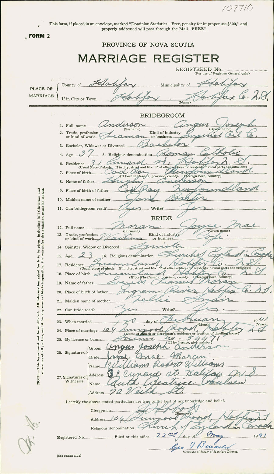 Registration: Year: 1941 number: 107710