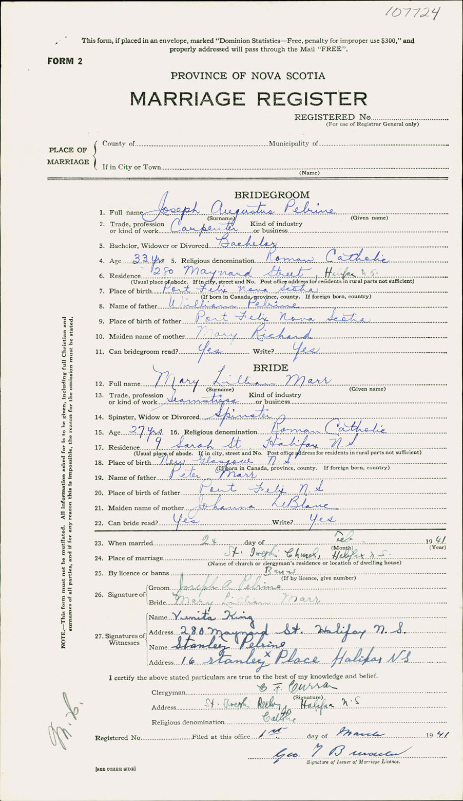 Registration: Year: 1941 number: 107724