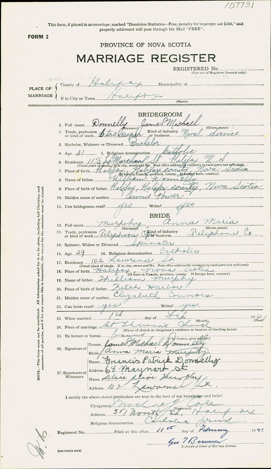 Registration: Year: 1941 number: 107731
