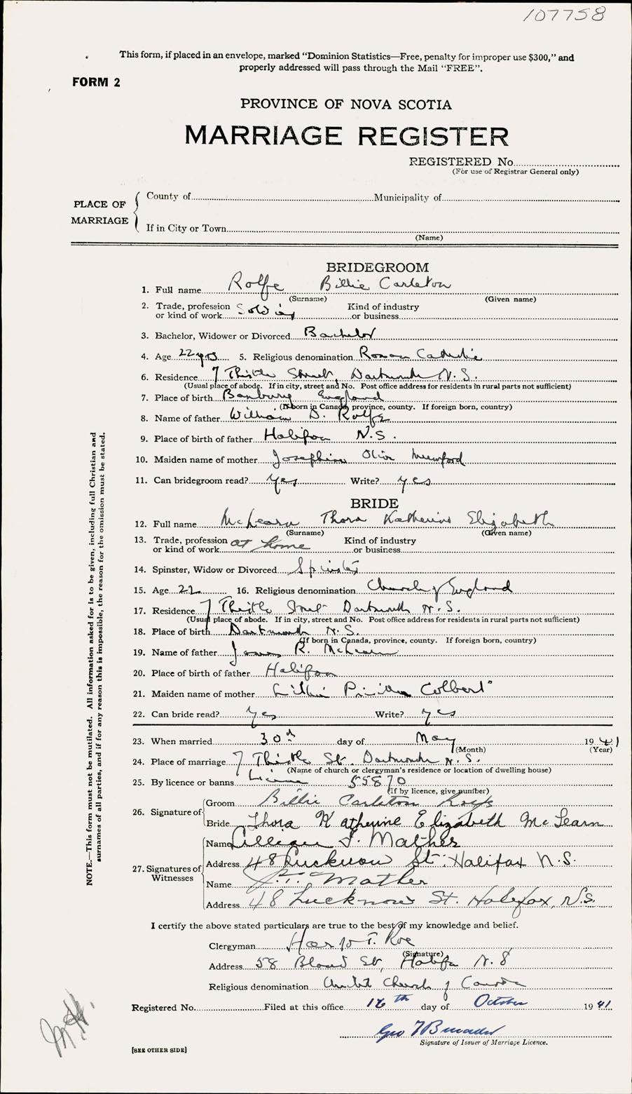 Registration: Year: 1941 number: 107758