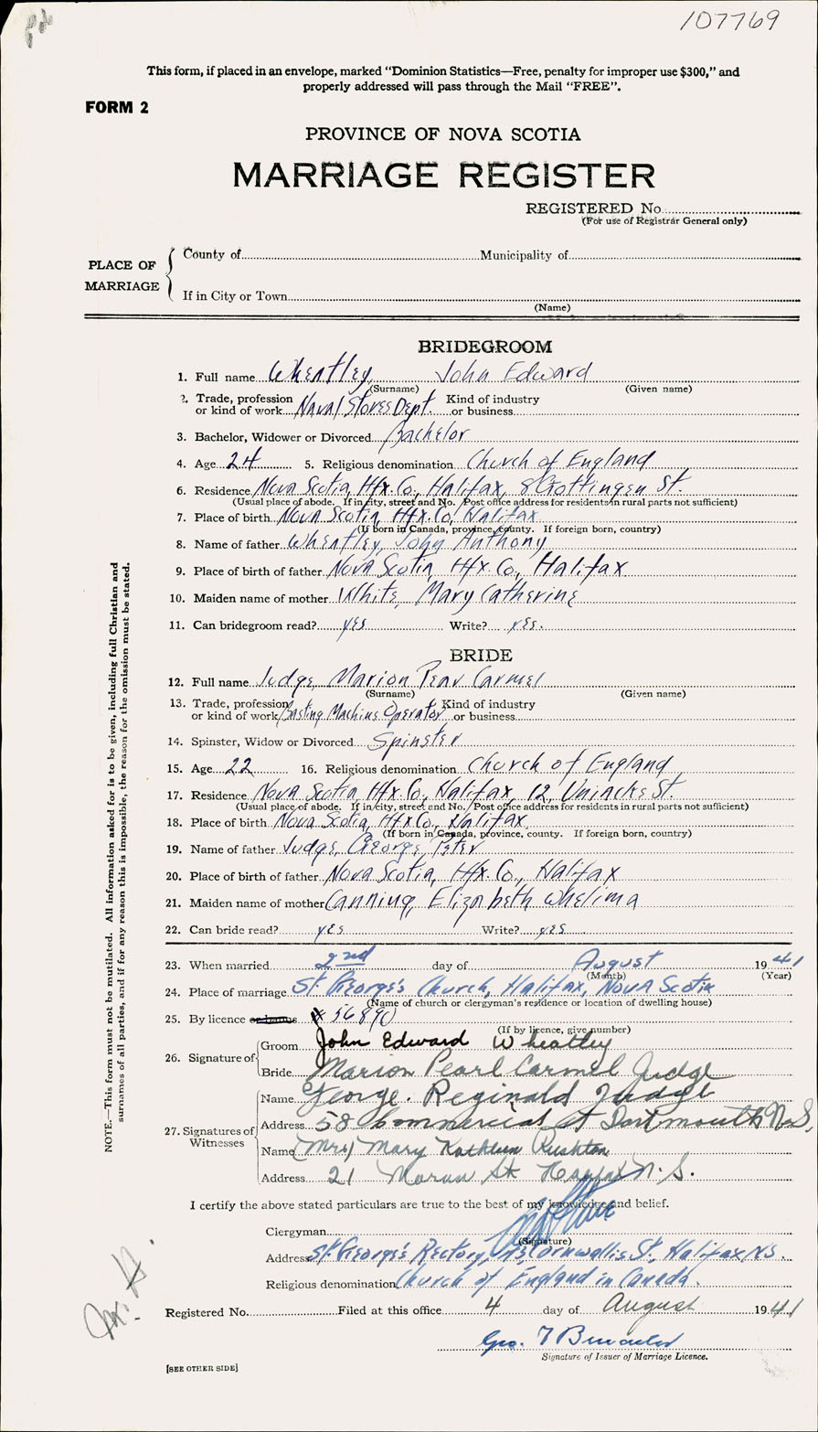 Registration: Year: 1941 number: 107769