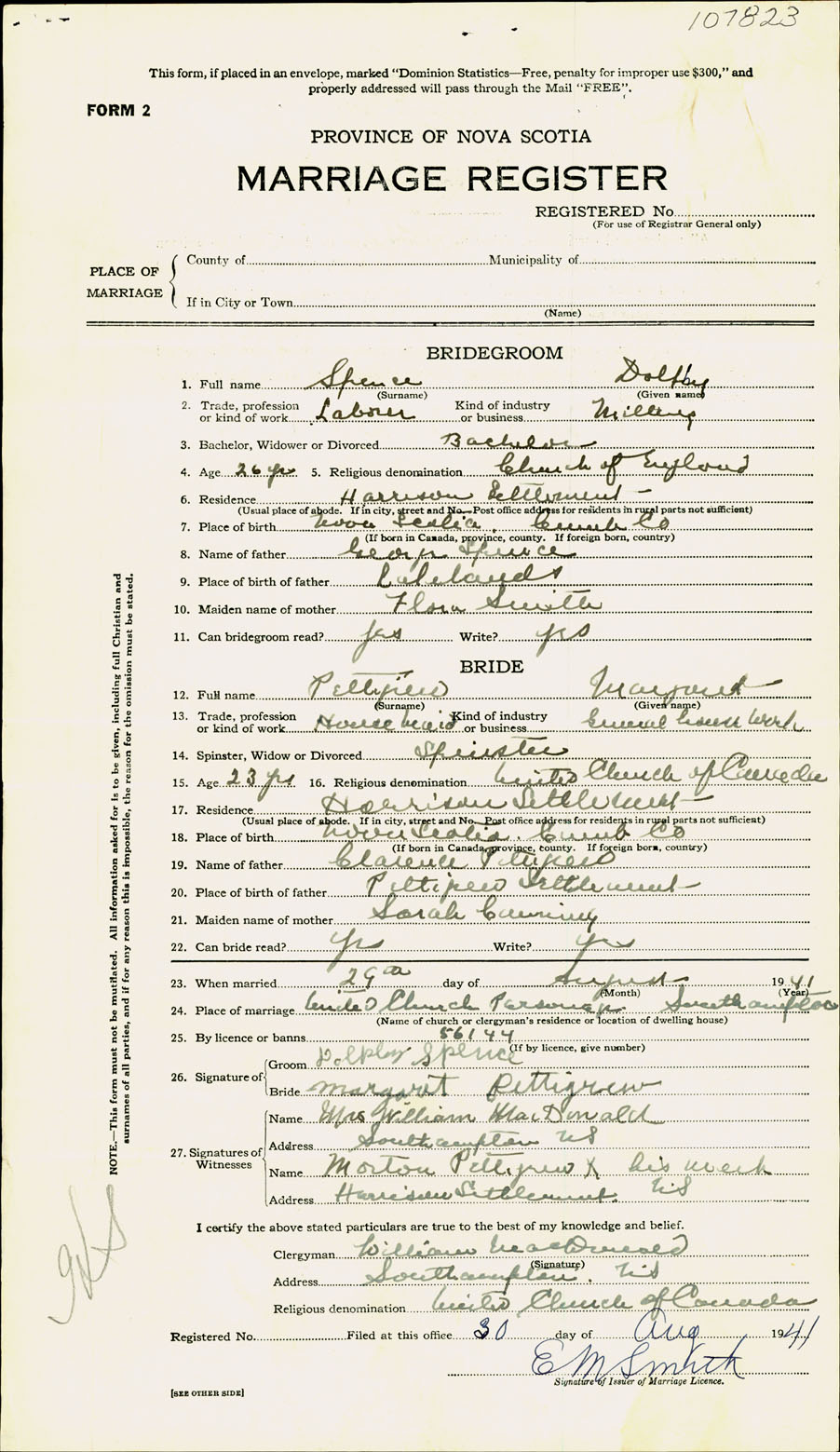Registration: Year: 1941 number: 107823