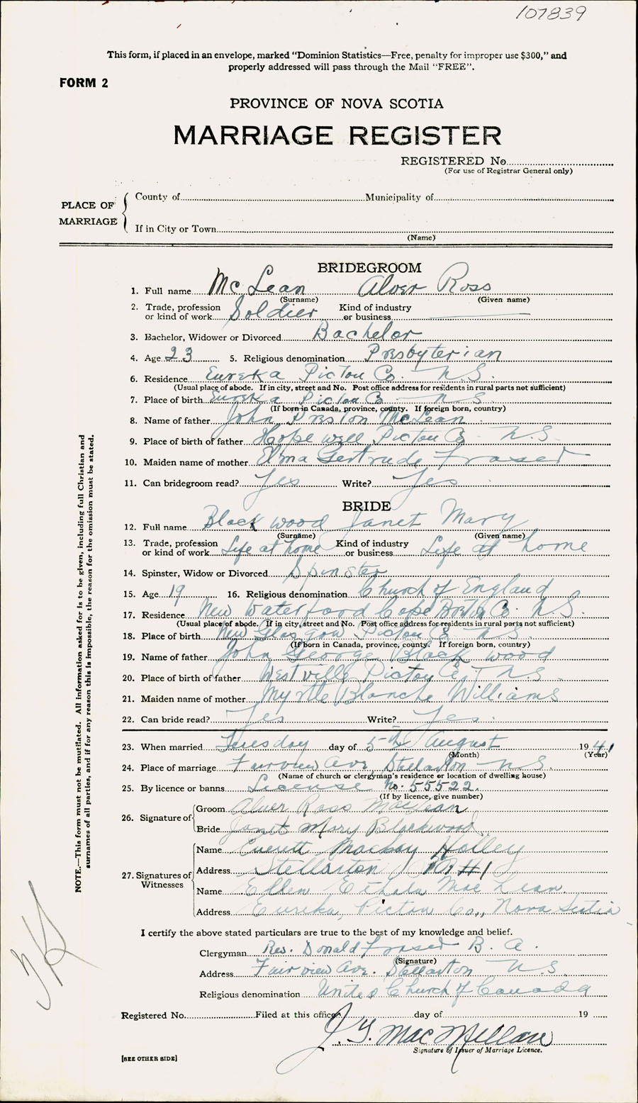 Registration: Year: 1941 number: 107839