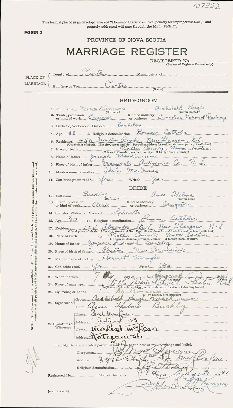 Registration: Year: 1941 number: 107852