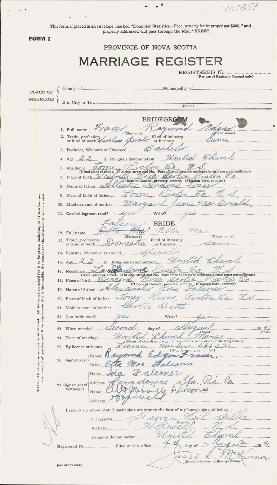 Registration: Year: 1941 number: 107859