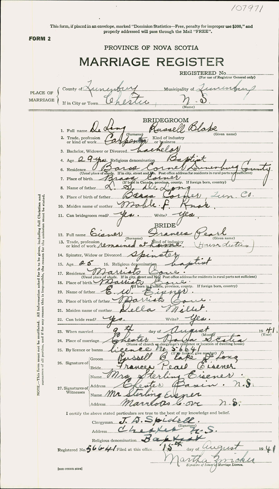 Registration: Year: 1941 number: 107971