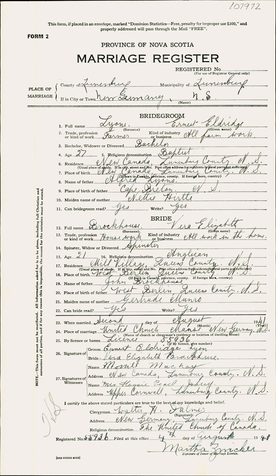 Registration: Year: 1941 number: 107972