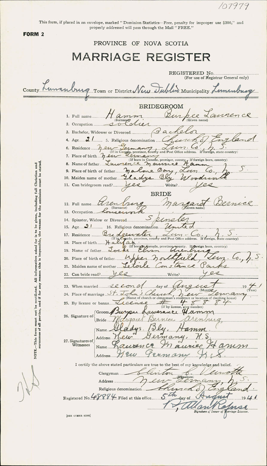 Registration: Year: 1941 number: 107979