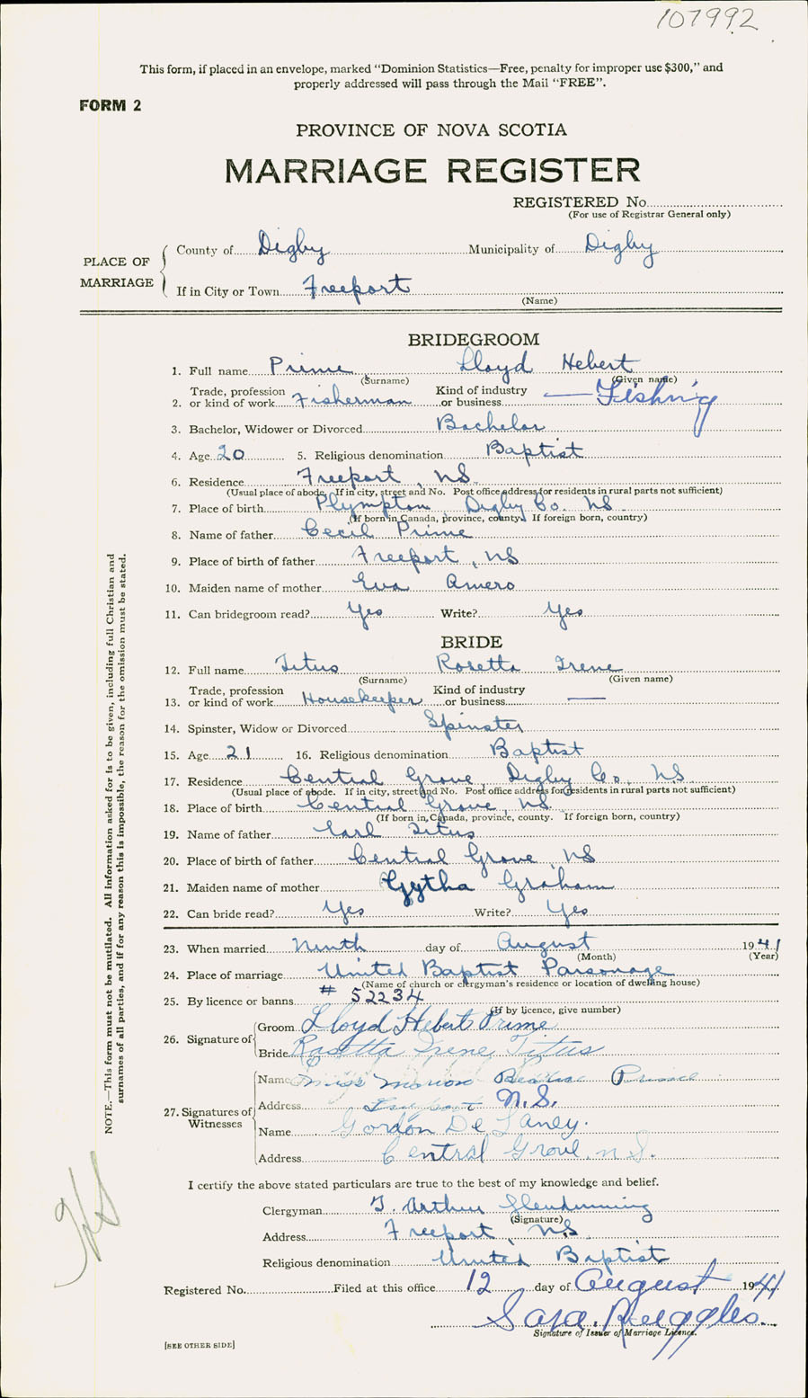 Registration: Year: 1941 number: 107992