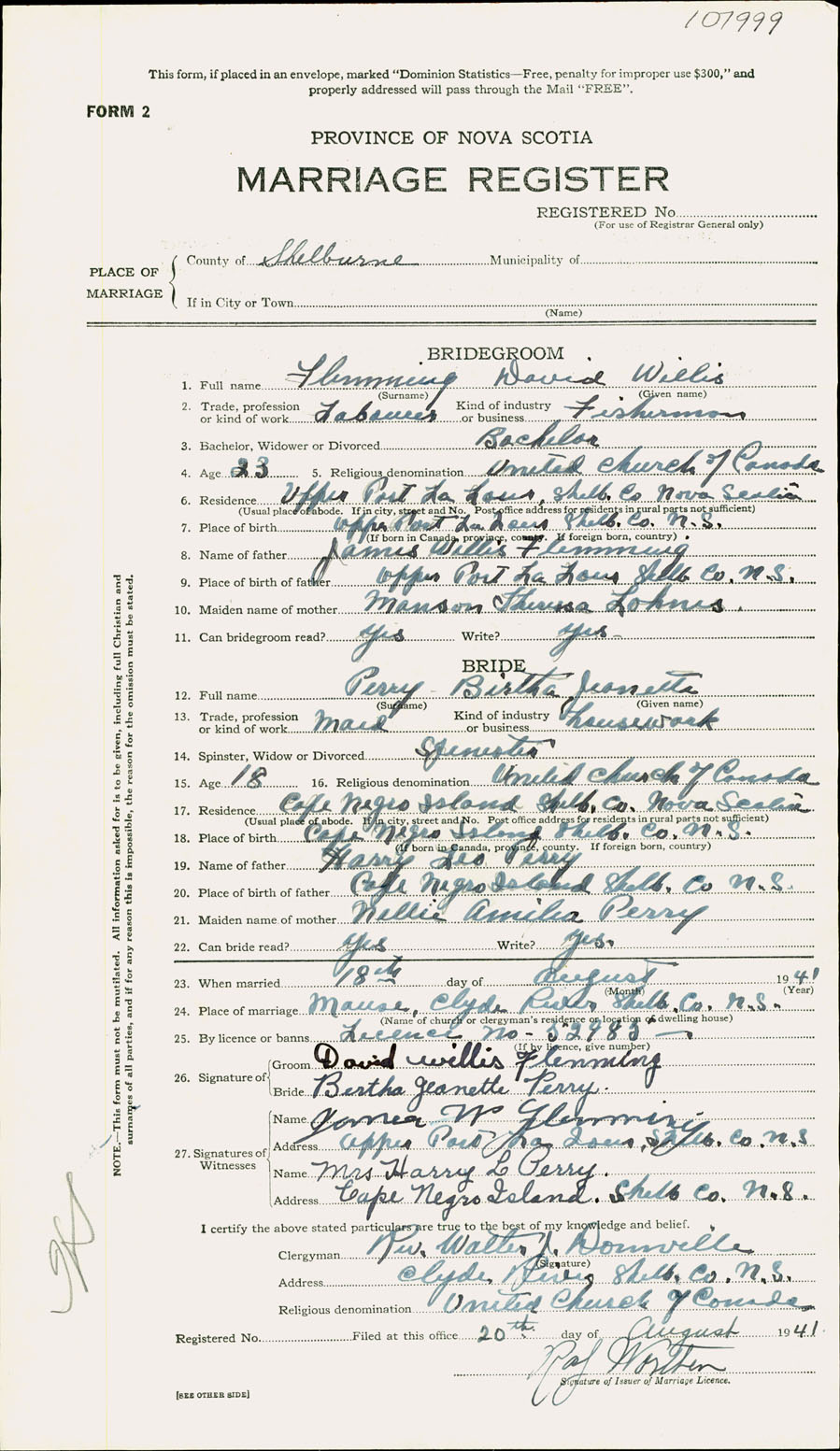 Registration: Year: 1941 number: 107999
