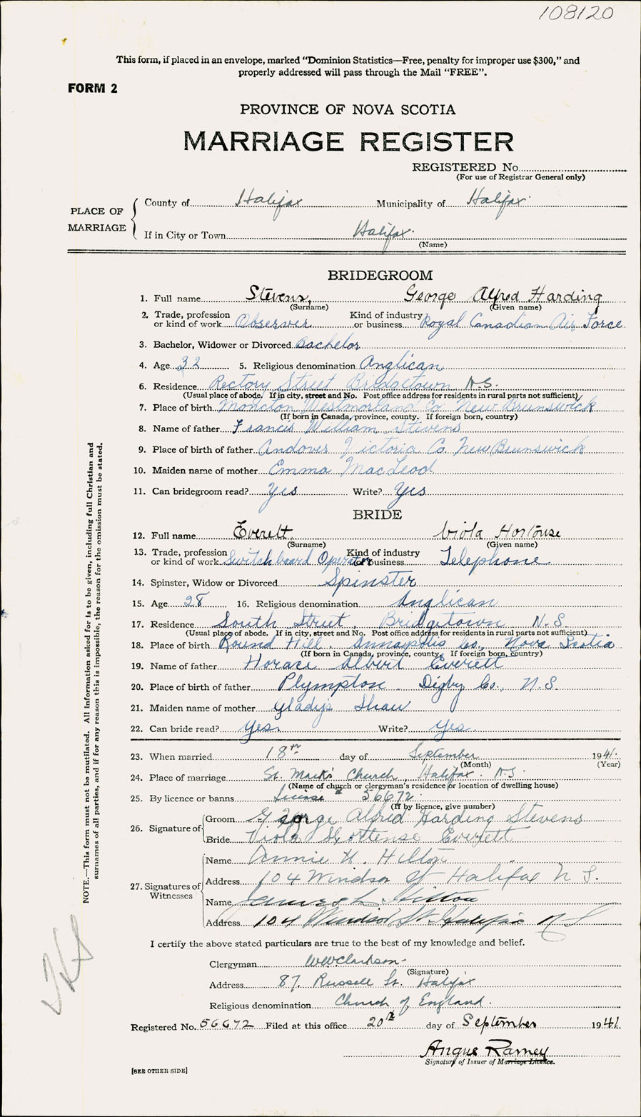 Registration: Year: 1941 number: 108120