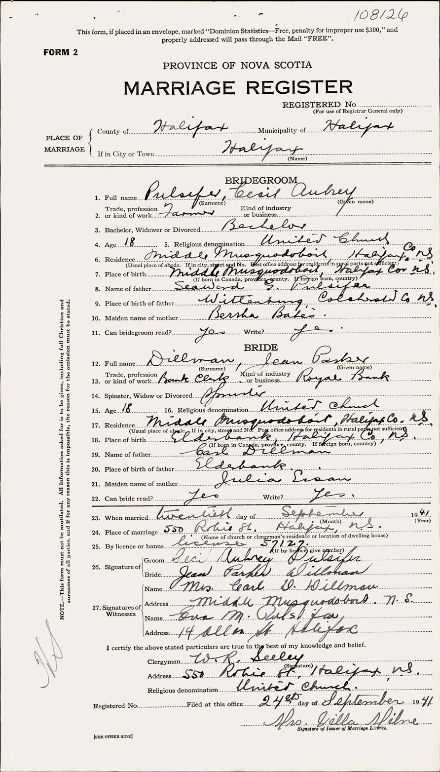 Registration: Year: 1941 number: 108126
