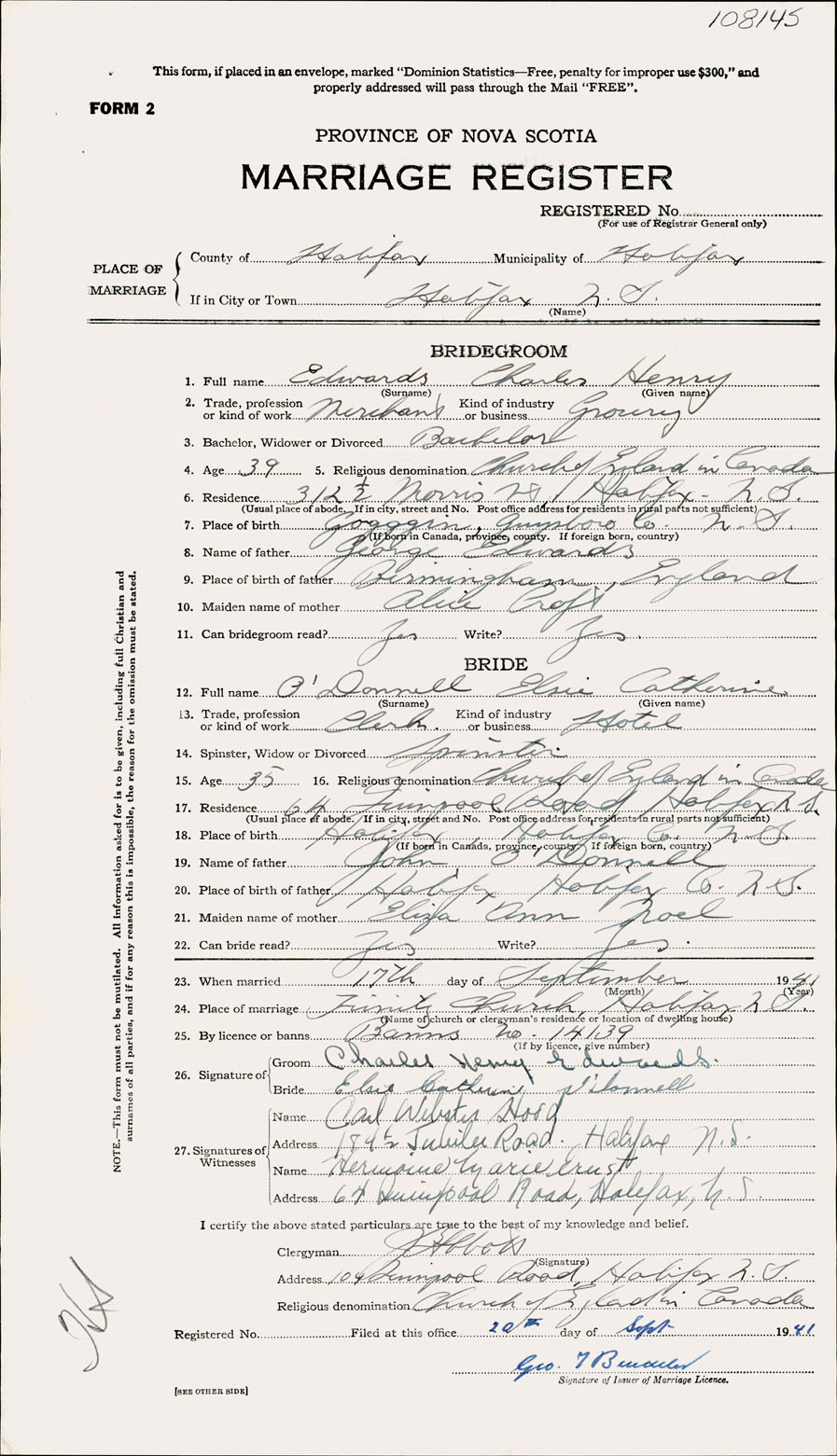 Registration: Year: 1941 number: 108145