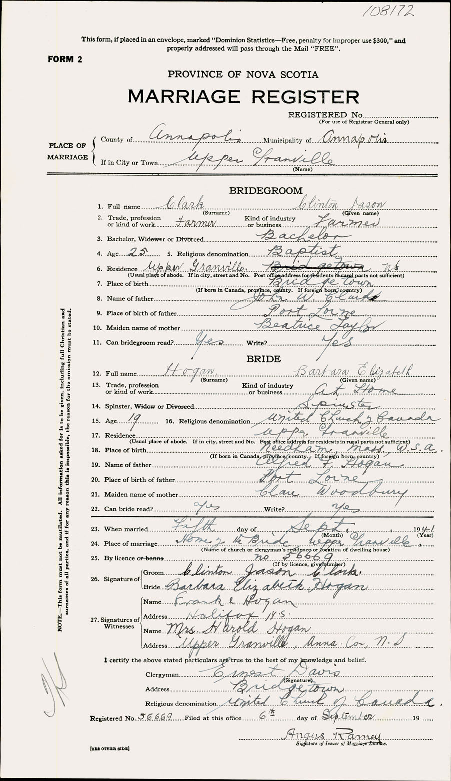 Registration: Year: 1941 number: 108172