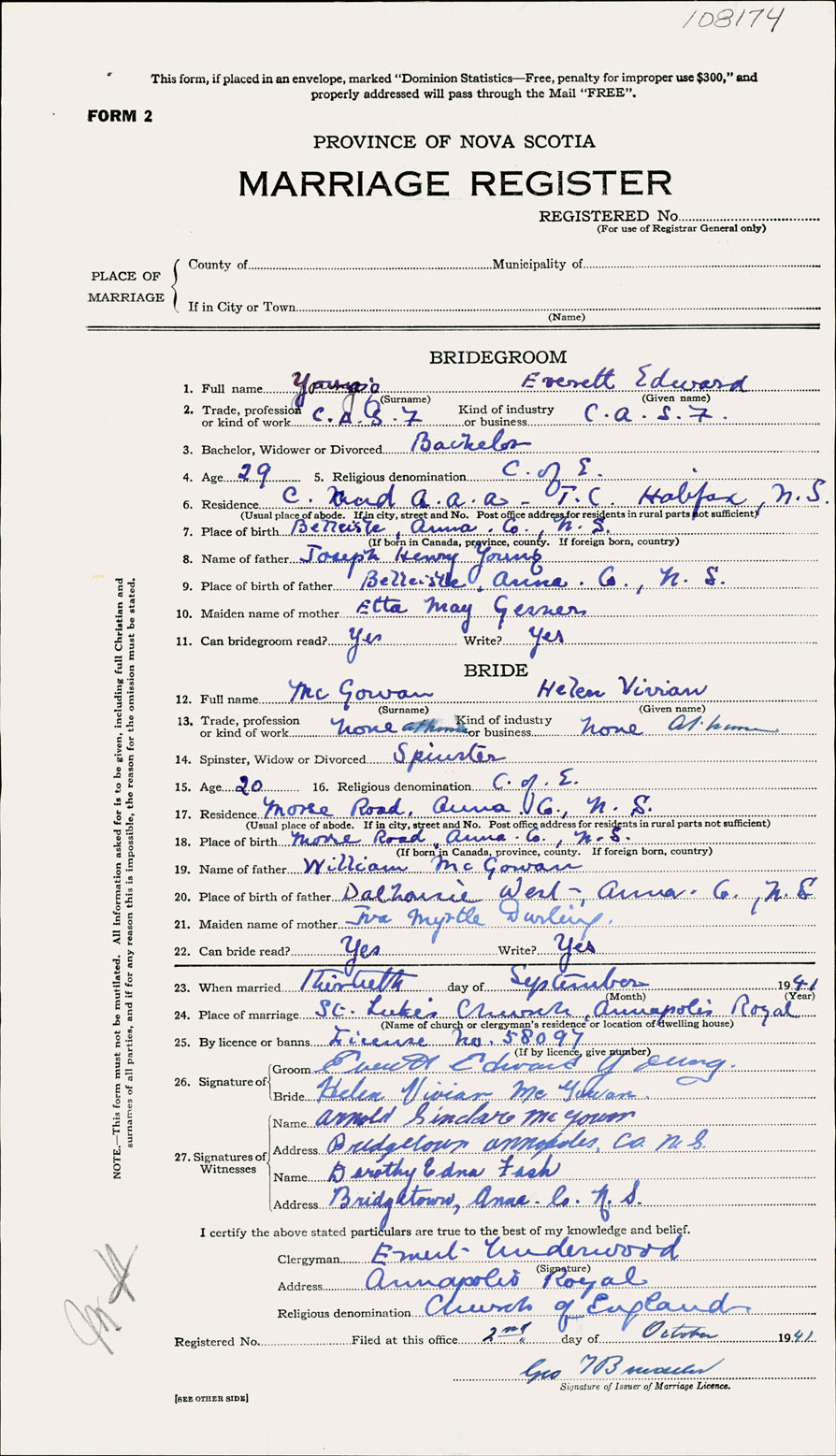 Registration: Year: 1941 number: 108174