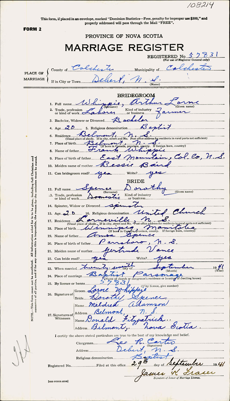 Registration: Year: 1941 number: 108214