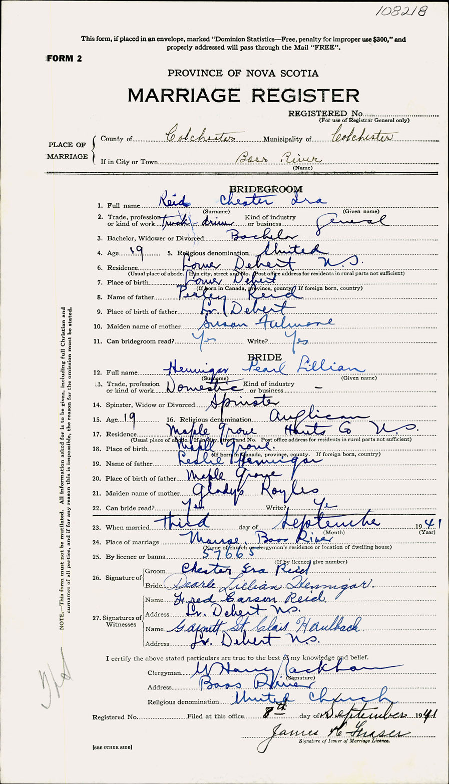 Registration: Year: 1941 number: 108218