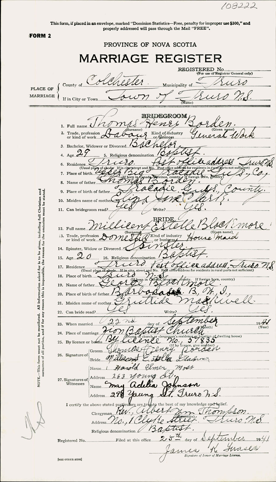 Registration: Year: 1941 number: 108222