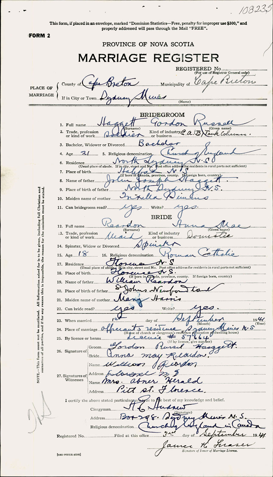Registration: Year: 1941 number: 108235