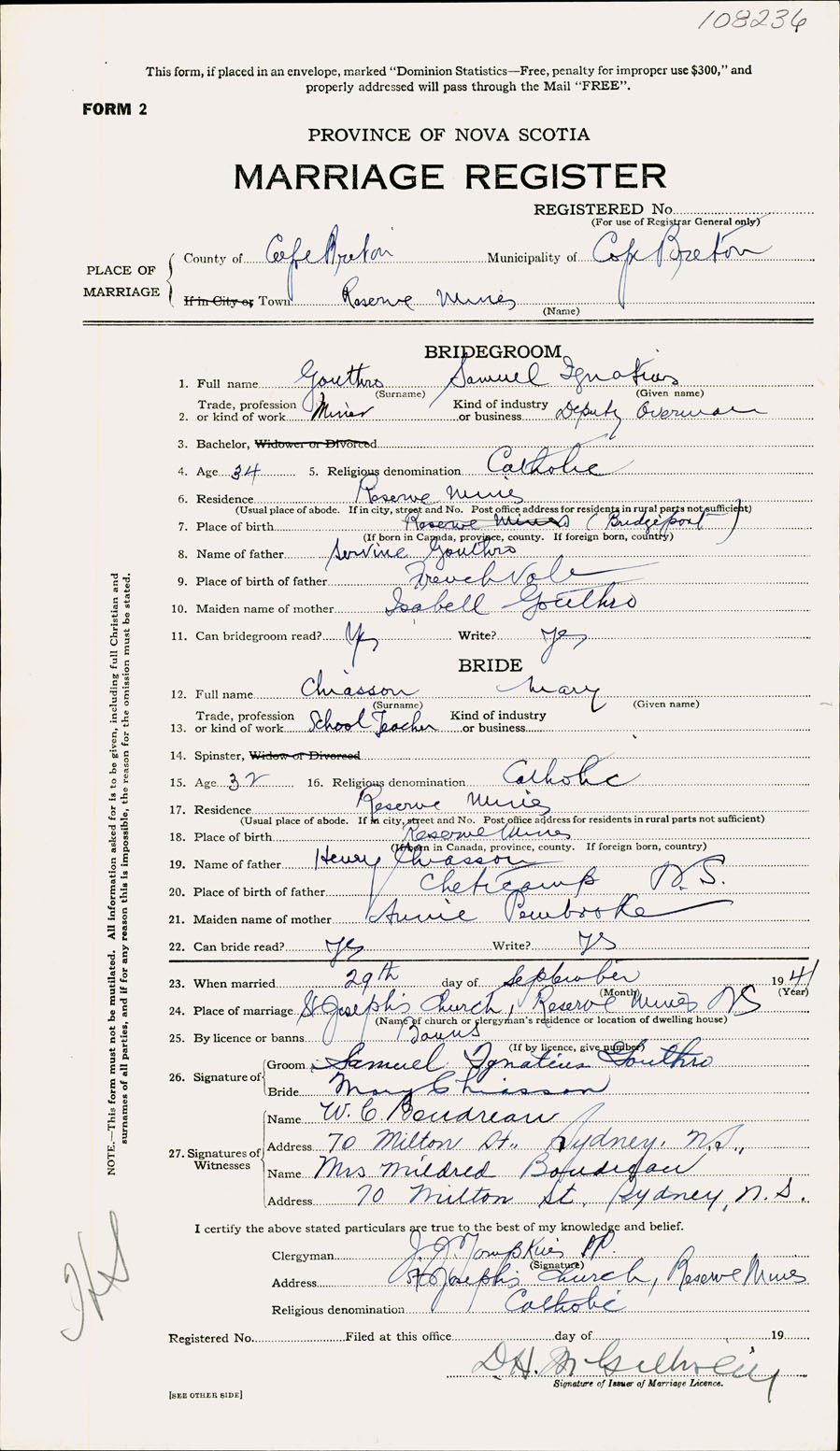 Registration: Year: 1941 number: 108236